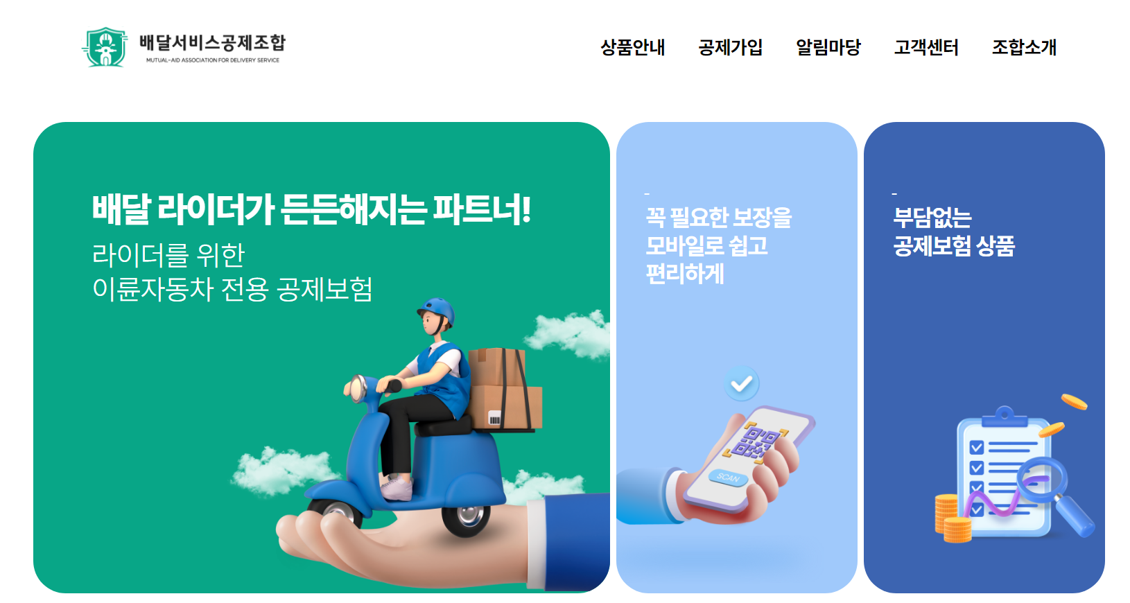 배달종사자 여러분, 새로운 공제보험상품이 출시되었습니다! 보험사 대비 최대 32% 저렴한 배달종사자용 공제보험상품으로 보험료 부담을 덜고 안전하게 일할 수 있는 기회를 놓치지 마세요.