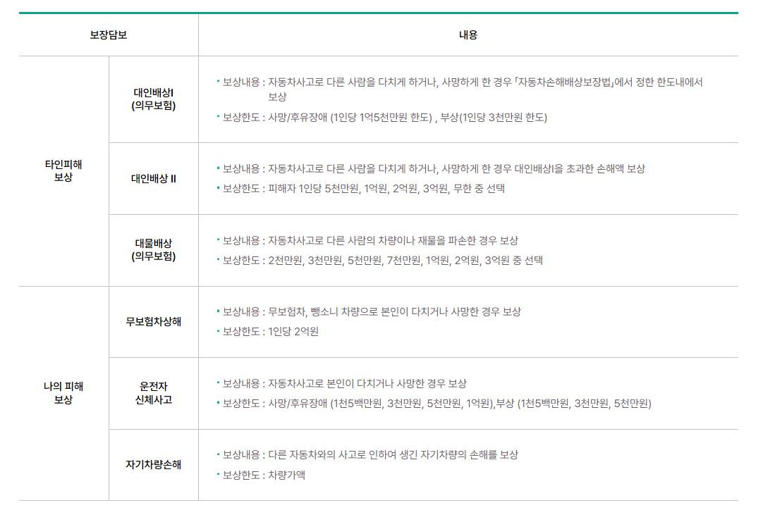 - 유상운송보험 : 대인 1억5천만원 / 대물한도 2천만원