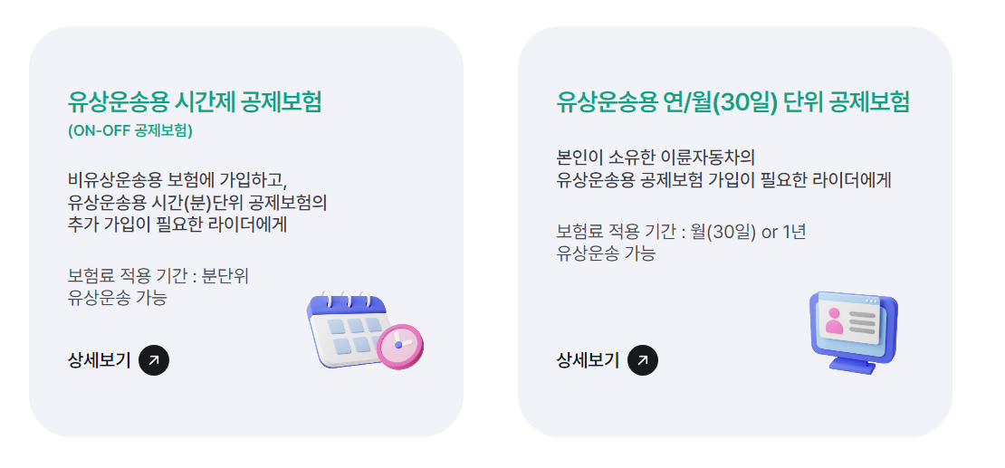 - 시간제 : 배달플랫폼 종사자 업무용 앱에서 종사자가 보험사 선택