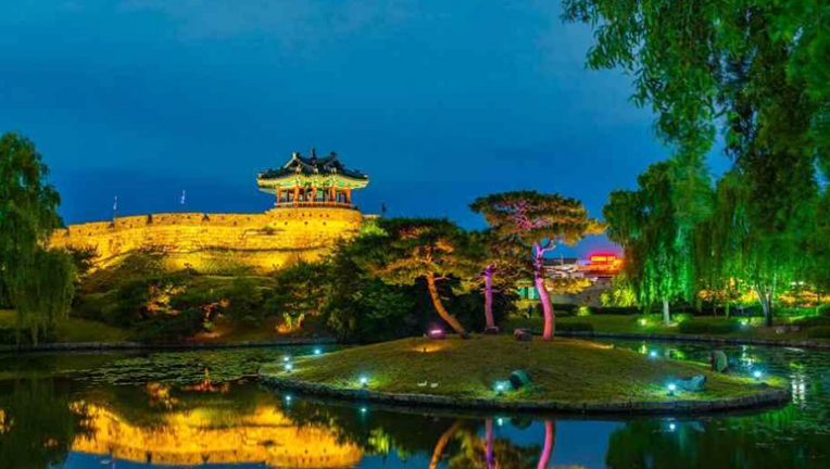 화홍문에서 즐기는 수원천의 멋진 야경