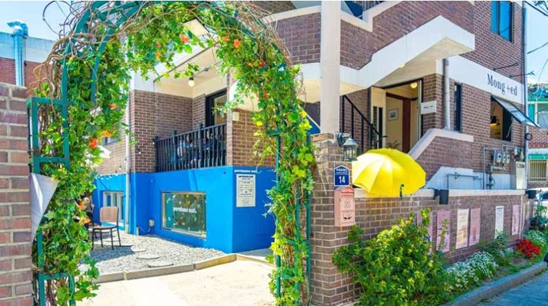 드라마 선재와 솔의 집으로 등장했던 카페 몽테드는 극 중 가장 많이 등장한 촬영지 중 하나입니다. 이곳은 실제로 카페 몽테드가 영업장으로 사용하는 건물로, 이국적인 간판과 포스터로 꾸며져 있지만 빨간 벽돌로 마무리된 외관과 좁은 골목길이 정겨운 분위기를 자아냅니다.