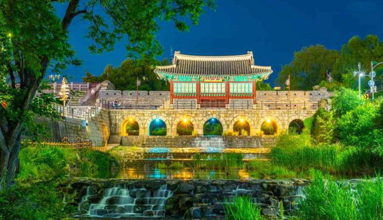 화홍문 하류에 놓인 징검다리와 인도교를 따라 걷다 보면, 수원화성의 아름다운 경치를 감상할 수 있습니다. 특히 저녁에는 화홍문의 야경이 빛을 발하며, 고요한 수원천과 어우러져 독특한 분위기를 자아냅니다. 이곳에서 선재와 솔의 로맨틱한 순간을 떠올리며, 화홍문에서 가장 멋진 경관을 즐겨보세요.
